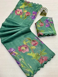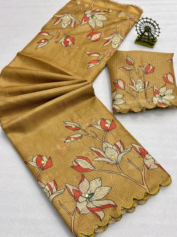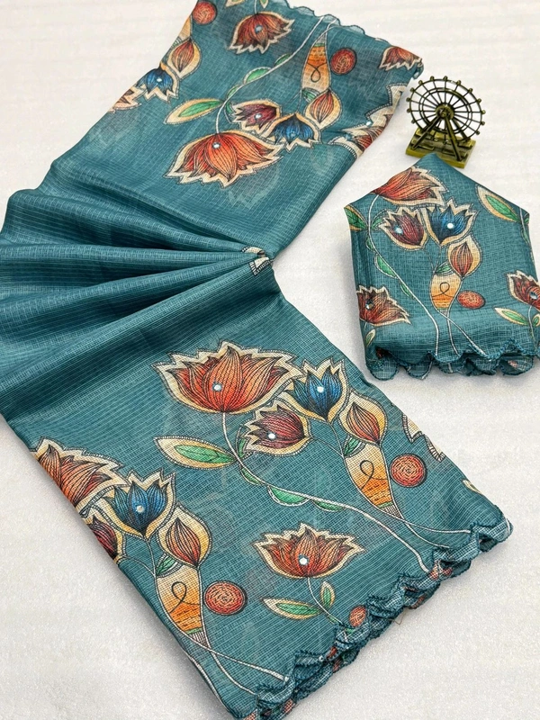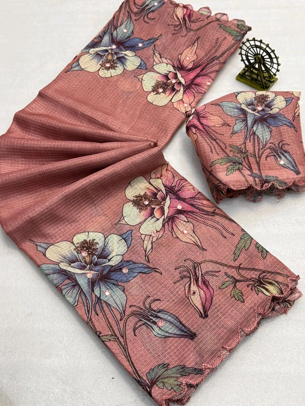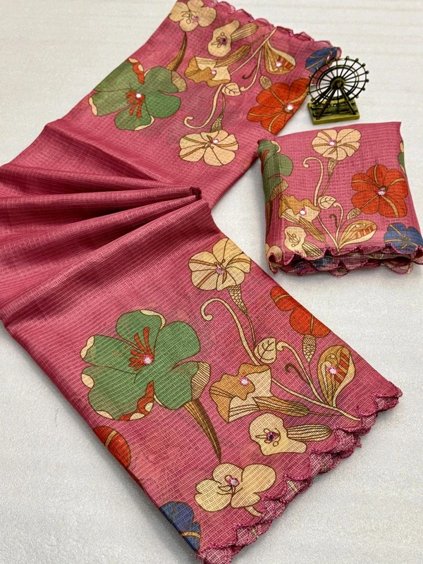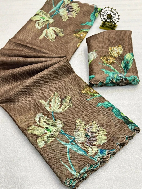Soft Kota Chex Flora Prited Saree